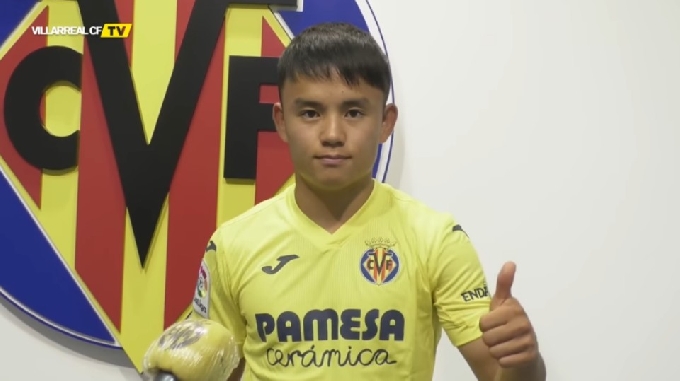 | 쿠보가 스페인어로 비야레알 첫 인사를 하는 모습이다. /사진=비야레알 SNS 캡처 |