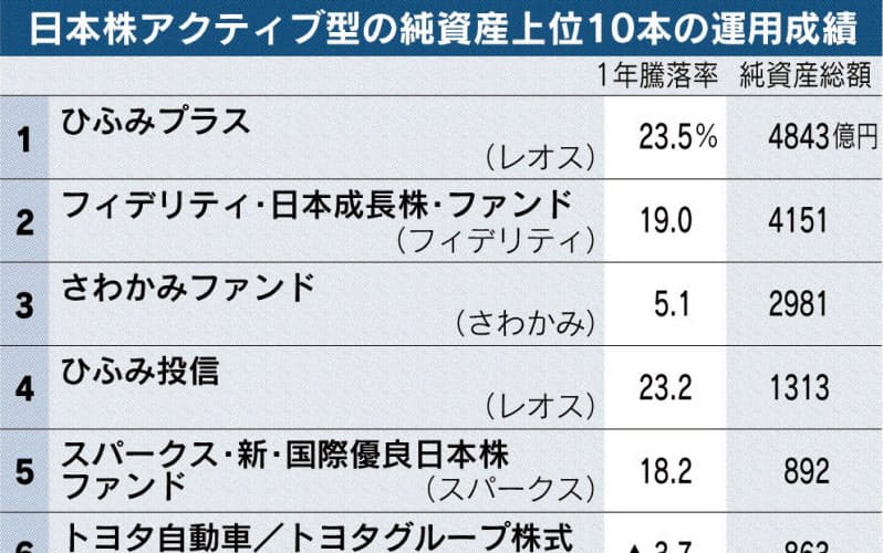 日本株アクティブ型の騰落率 純資産上位10本で明暗 - 日本経済新聞