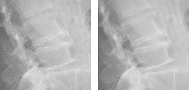 X線画像のノイズを低減する画像処理技術「Intelligent NR」を新たに開発した。キヤノン製のX線撮影装置で撮影した画像を表示するソフト向けのオプションとして販売する。これまで蓄積してきた臨床画像から約3000枚の X 線画像を選び、撮影部位ごとにノイズの特徴を機械学習した。画質を維持しながら、不要なノイズを効率的に除くことができるようになった。