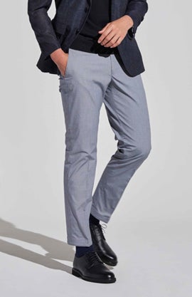ストレッチ性が高く、快適なはき心地。自宅の洗濯機で洗うことができ、クリースが消えにくい特殊加工が施されています。