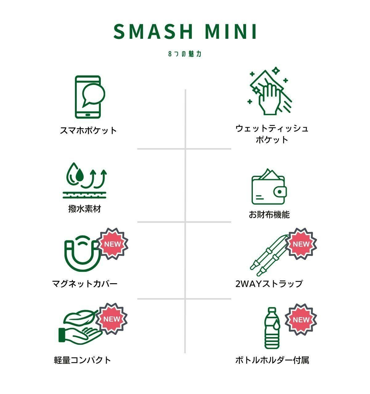 Smashbagからさらに進化を遂げて完成したSmashMINI。ミニサイズになっても変わらない収納力と利便性で、あなたのアクティブライフをより楽しくする逸品です。