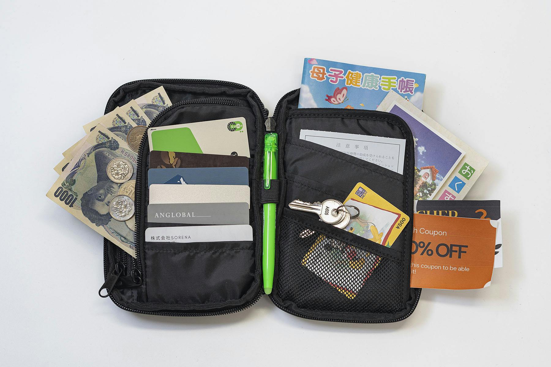 母子手帳を入れたり、レシートを仕分けしたりととにかく使い勝手に富んでいます。