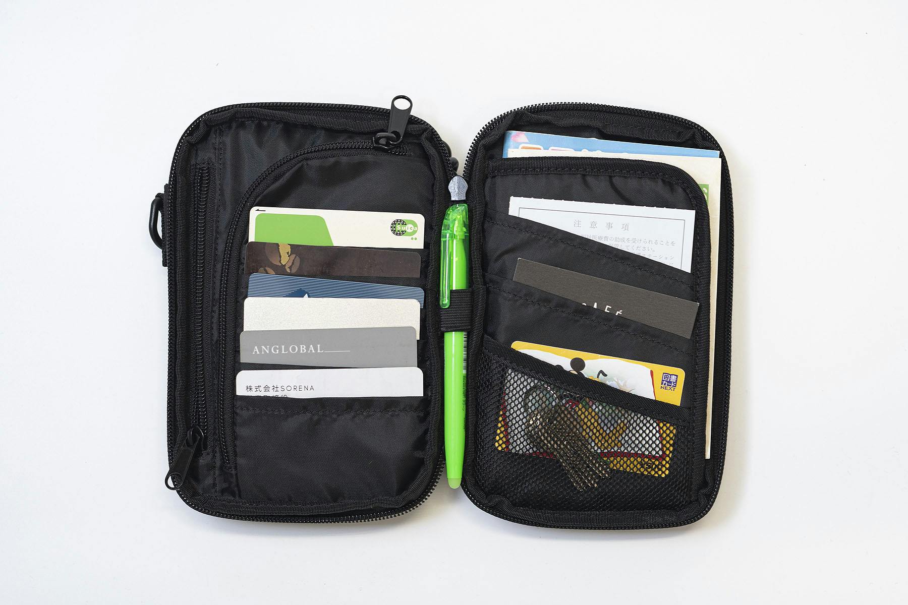 それでいて使いやすいように、お財布機能を備えた13個のポケットを搭載しました。